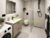 Moderní koupelna se sprchovým koutem a dostatkem místa jak na pračku tak